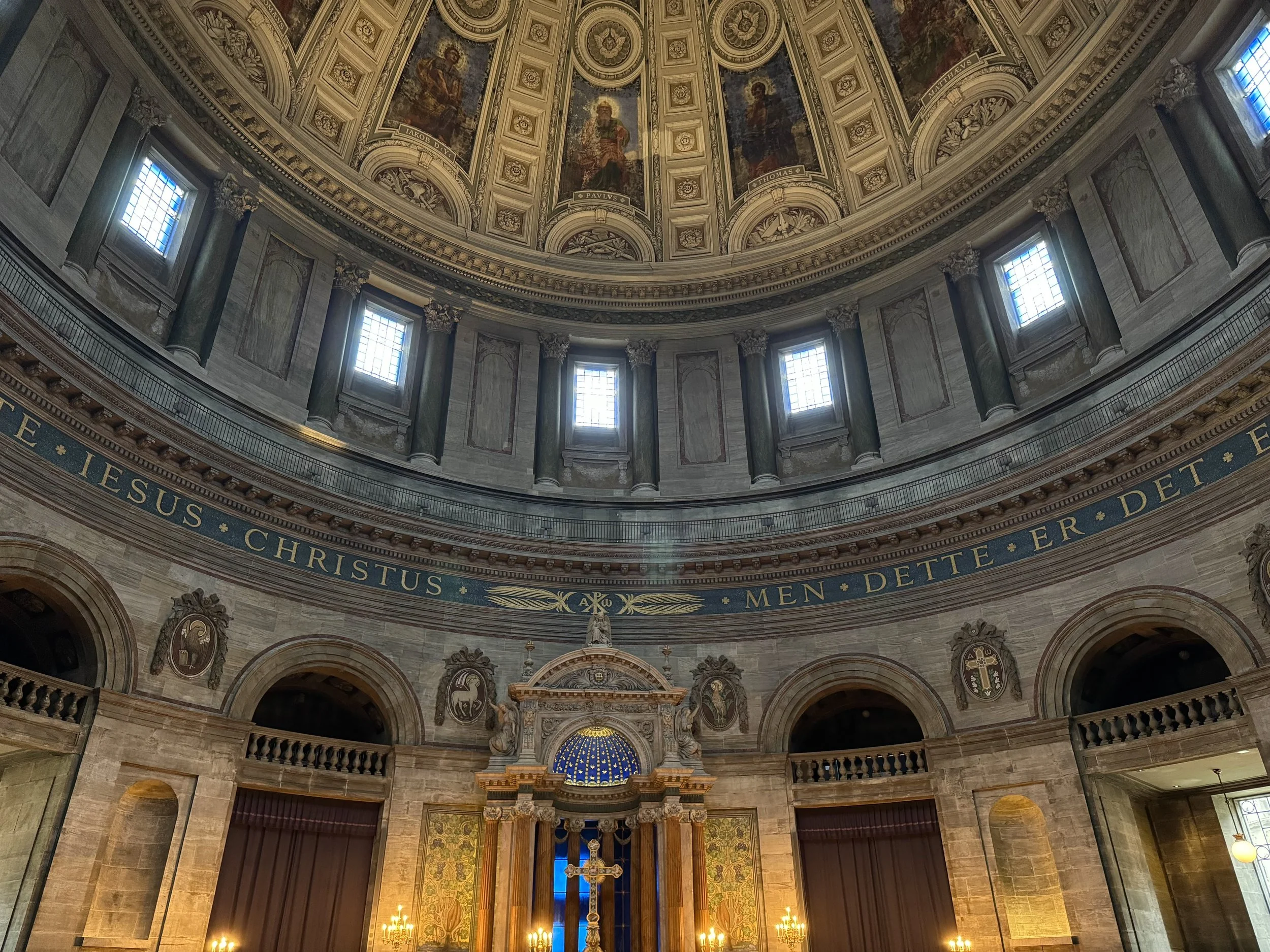 Nicknamed “The Marble Church,” Frederik’s is indeed the focal point of the district. I passed the church on my way to Amalienborg, marveling at the exterior and decided to take a quick look inside. This is one of most architecturally enigmatic churches I have ever seen. Topped with a green copper dome held aloft by massive columns, this building looks less like a church and more like a Roman Forum.