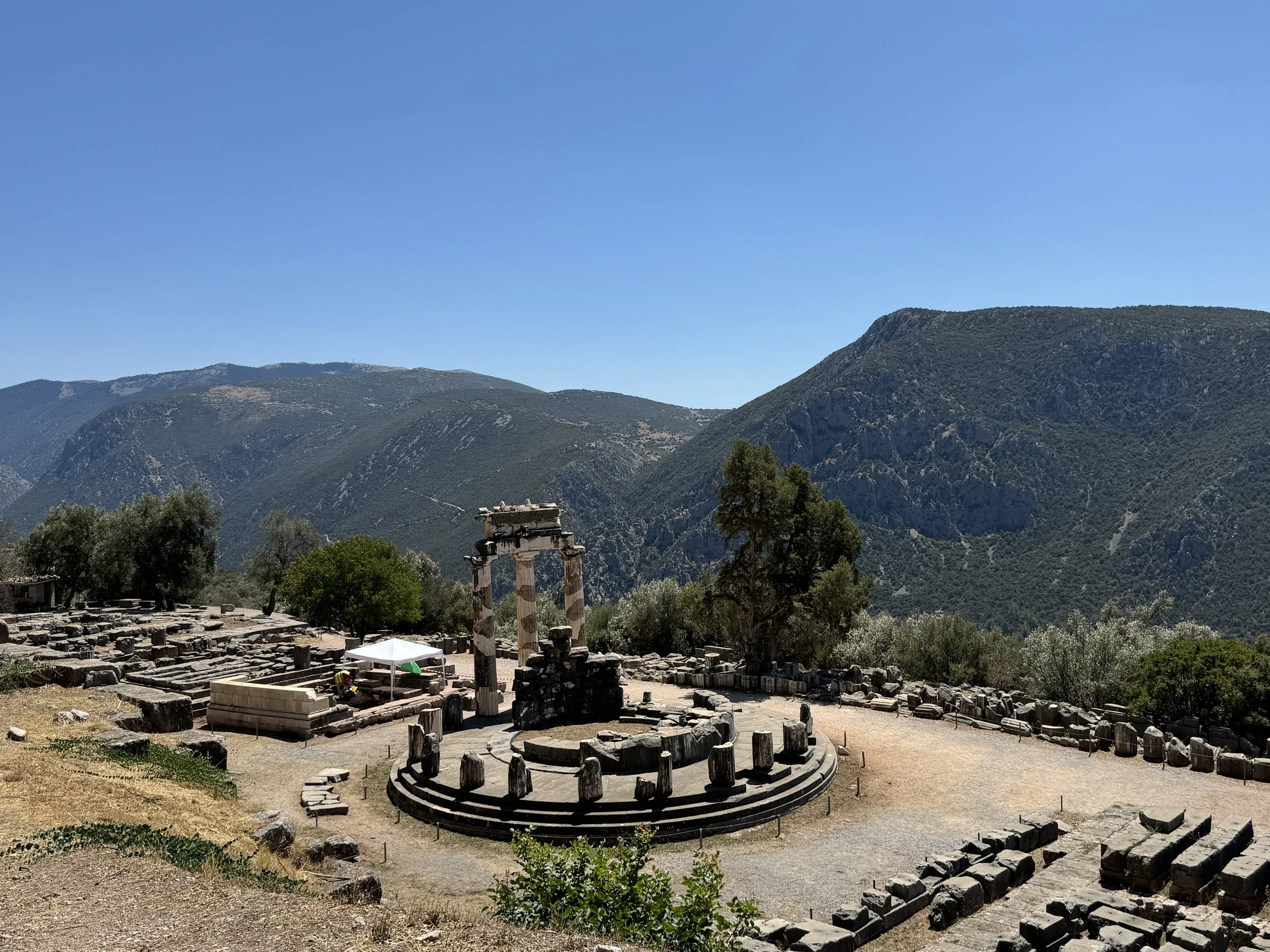 “I walk through the ancient ruins and marvel. I look out at the mountains and water in the distance and wonder what it would have been like to do so centuries and centuries before. What it might have looked like then? What memories the land holds? What power the city of Delphi holds? The navel, the center, of the earth. What mystic, prophetic energy remains in the ground below?” - Journal Entry, 8.12.24