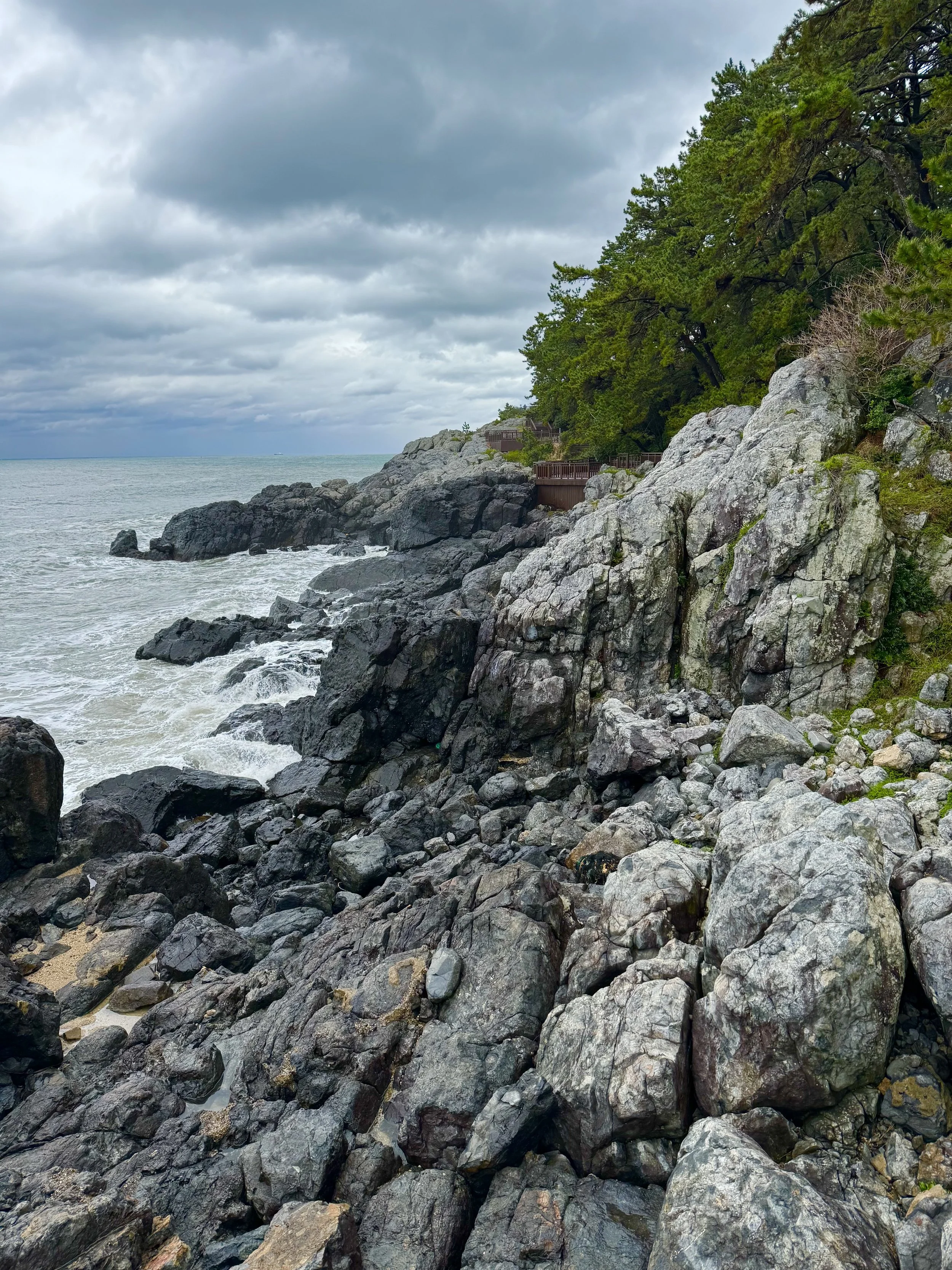 “I decided to walk to a waterfall I found on the map. First I got a breakfast onigiri, ate it on the beach, then I was off. I walked on sidewalks until I found a path that followed the stream up. This was a very nice walk that led to the base of the mountain. I climbed up, past a Buddhist temple until I found the waterfall. Once there you could hike many different paths, and there were a lot of Koreans here. It felt less touristy that way.” - Journal Entry, 4.1.24